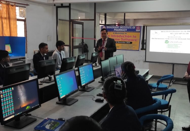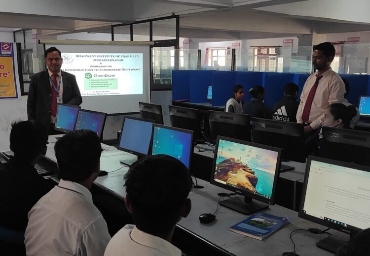 Bhagwant Institute of Pharmacy conducted a practical workshop on “An Introduction to ChemDraw Software” on 18th November 2024. The session focused on giving students a clear understanding of ChemDraw, an essential tool used in chemical structure drawing and pharmaceutical research.